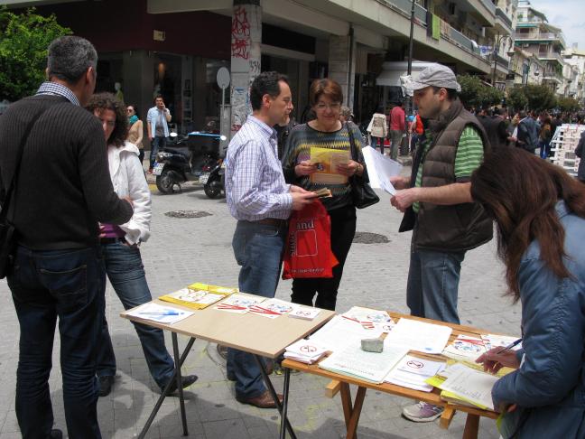 Από το περίπτερο που είχε στηθεί στη διασταύρωση των πεζόδρομων Ρ. Φεραίου και Γεροκωστοπούλου πέρασαν πολλοί συμπολίτες μας στους οποίους διανεμήθηκε ενημερωτικό υλικό και συζήτησαν με τα μέλη του Δικτύου για τις αρνητικές συνέπειες της ηχορρύπανσης. Αρκετοί ήταν και οι συμπολίτες οι οποίοι ανέφεραν κάποιο πρόβλημα ηχορρύπανσης στην περιοχή τους. Πρόθυμα δε, συμπλήρωσαν μια Φόρμα Καταγραφής Προβλήματος με τα στοιχεία τους, έτσι ώστε να λάβει γνώση το Δίκτυο και να προωθήσει τα θέματα στους αρμόδιους προς επίλυση. Από την ανάγνωση των καταγραφών, εντύπωση δημιούργησε η συχνότητα καταγγελιών για ηχορρύπανση στην περιοχή του Πελεκάνου. Άμεσα το Δίκτυο θα εντοπίσει τη δράση του στο συγκεκριμένο χώρο. Το περίπτερο επισκέφθηκε και κλιμάκιο της Δημοτικής Αρχής (Β. Λοτσάρης Αν/ρχος, Ν. Κωστόπουλος Πρόεδρος Πολιτιστικού Οργανισμού, Γ. Βασιλακόπουλος υποψήφιος σύμβουλος) με επικεφαλής το Δήμαρχο και έγινε μια χρήσιμη συζήτηση για τις ευθύνες και τις δυνατότητες των Δήμων στο συγκεκριμένο ζήτημα. Επίσης στη δράση έδωσαν το παρόν οι υποψήφιοι Α. Τζουραμάνης (Δήμαρχος Πατρέων), Ν. Τζανάκος (Δήμαρχος Πατρέων), Γ. Κανέλλης (Περιφερειάρχης Δ. Ελλάδος), Ο. Ξεριζωτής εκ μέρους Β. Σαμούρη (Δήμαρχος Πατρέων), Α. Σπηλιώτης (για την ευρωβουλή με τους ΠΡΑΣΙΝΟΥΣ).
